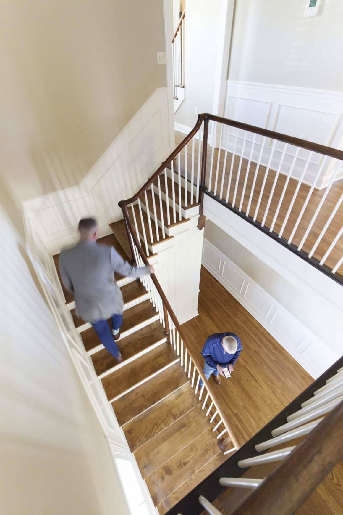 “The crown molding and trim are accented in white with a neutral color on all interior walls, except the dining room and first floor powder room,” Jeff says. “The windows and doors were all custom made locally and match the exterior roof trim and fascia. All original hardwood flooring, stair tread, and railings were restored to their original appearance.”