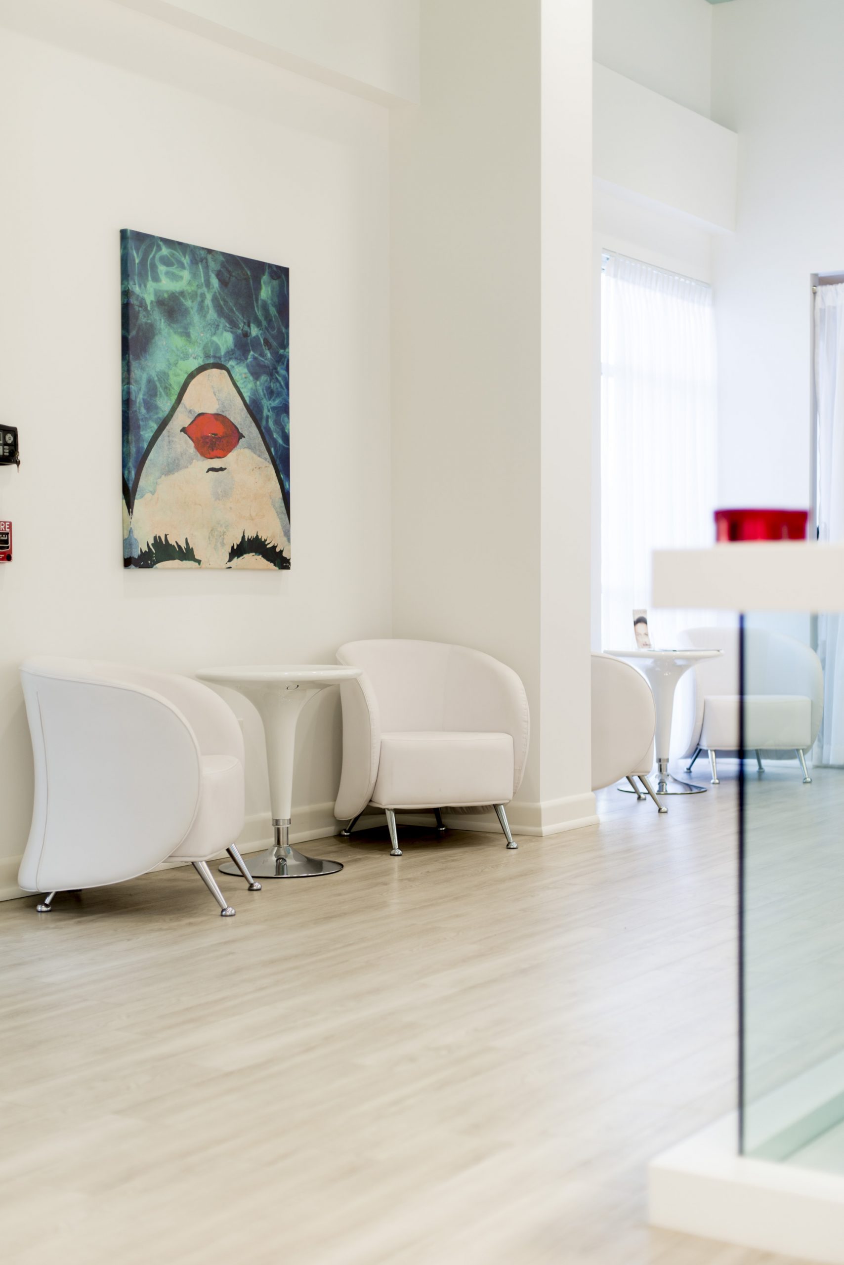 Chic and minimalistic, each room at in the building is large and open, avoiding anxiety-inducing clutter. The soft colors and clean lines create a serene environment, and the simple, modern aesthetic allows your mind to focus on symmetry. This focus, backed up by Gestalt psychology, creates contentment through recognition of patterns, and the simple color scheme adds to the effect.