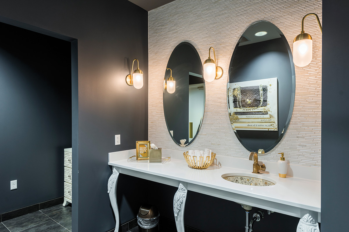 The accents in the medspa were chosen as a visual separation between the spa side (black and gold) and the medical esthetics side (original color scheme). “After we got into the project, it just felt like they needed to have a bit of their own statement,” says Barb.