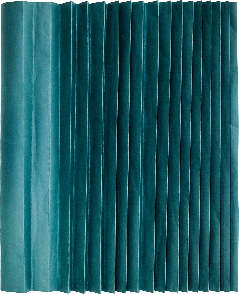 Pinching both sides of the first crease line, pull the paper up to meet the next crease line above it; then pull the crease down ¼ inch and press evenly across to create pleats. Repeat until you have used all crease lines. Flip over and tape to keep in place.